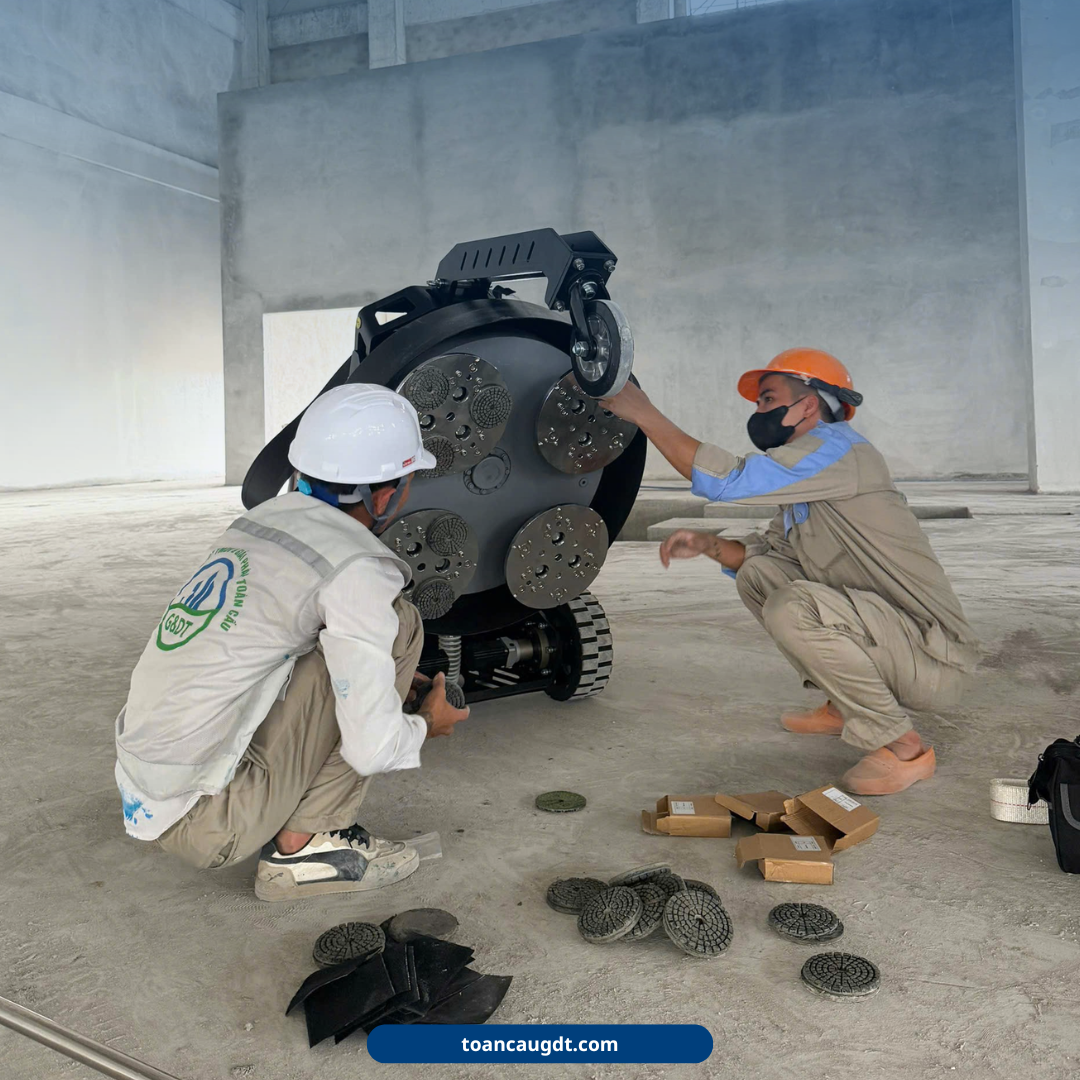 Đánh dấu bước tiến mạnh mẽ về công nghệ, góp phần tối ưu hiệu suất làm việc, nâng cao chất lượng hoàn thiện bề mặt và rút ngắn đáng kể thời gian thi công. Với khả năng vận hành ổn định, thiết kế hiện đại cùng hiệu suất vượt trội, thiết bị này đáp ứng tốt các yêu cầu khắt khe trong thi công sàn công nghiệp, từ độ phẳng đến độ bóng hoàn thiện.