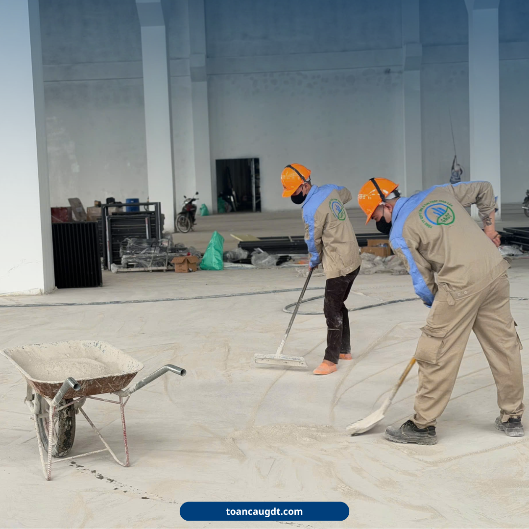 Giữa không gian phủ đầy bụi và âm thanh không ngừng của máy móc, hình ảnh những đôi tay lấm bụi, những bước chân in dấu trên từng mét sàn lại trở thành biểu tượng chân thật và đáng trân trọng nhất. Đó không chỉ là dấu vết của lao động, mà còn là minh chứng cho sự nỗ lực, bền bỉ và tinh thần trách nhiệm của anh em công trường trong từng công đoạn thi công.